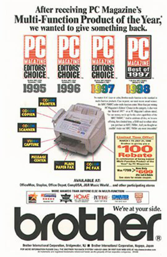 Brother集团凭借不断传承的技术,销售渠道与顾客关系,缔造出具有独创性的业务和产品。这种传承与创新,正是Brother独具的优势。
