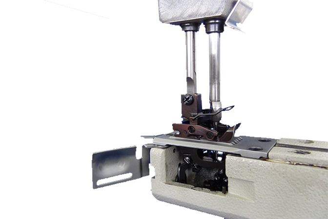 采用可移动式护针,防止跳针,实现完整缝纫。另外,可移动护针会和送布装置保持协调,因此即使改变针距,也无需调节。