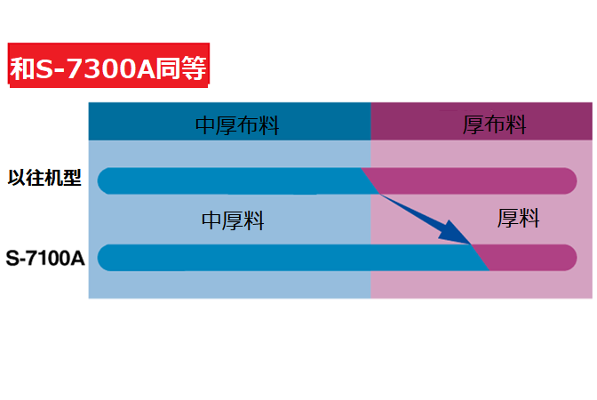 在中厚料规格上,使用了让上线顺畅通过的新旋梭,实现稳定的缝纫效果。而且,厚料规格的可缝性大幅提升。