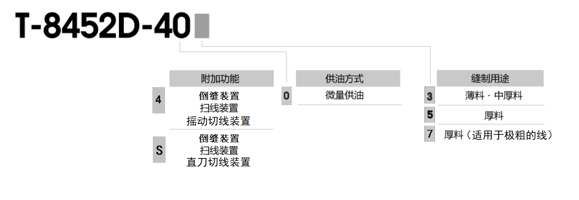 用途 薄料?中厚料 厚料 厚料(适用于极粗的线)