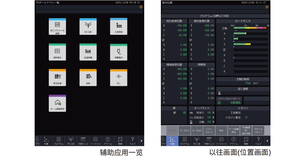 新设置了辅助应用,将相关功能集约化,通过可视化显示提高了操作性、可视性,还搭载了计算器、记事本、文件查看器等便捷功能,同时采用触摸屏使以往的画面操作更简单,大大提高了易用性。